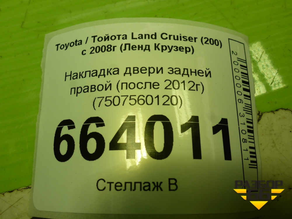 Накладка двери задней правой (после 2012г) (7507560120) для Toyota Land Cruiser (200) с 2008г (Ленд Крузер) в Краснодаре
