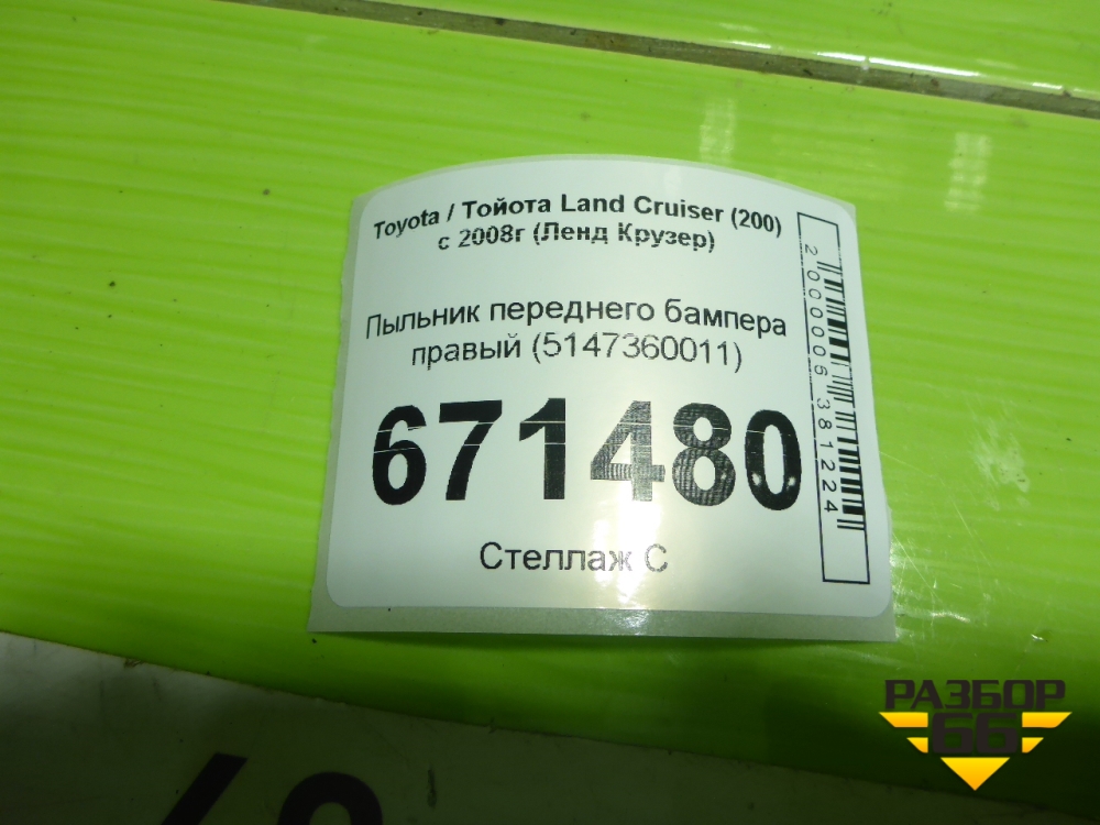Пыльник переднего бампера правый (5147360011) для Toyota Land Cruiser (200) с 2008г (Ленд Крузер) в Краснодаре