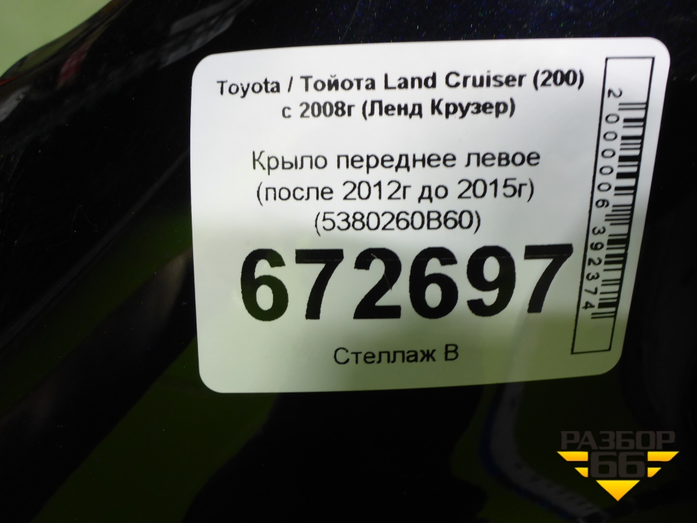 Крыло переднее левое (после 2012г до 2015г) (5380260B60) для Toyota Land Cruiser (200) с 2008г (Ленд Крузер) в Краснодаре