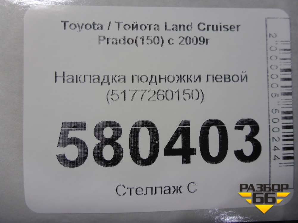Накладка подножки левой (5177260150) для Toyota Land Cruiser Prado(150) с 2009г (Ленд Крузер Прадо) в Краснодаре