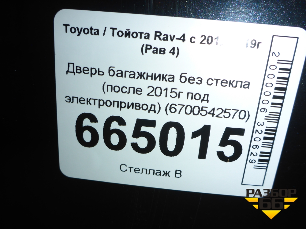 Дверь багажника без стекла (после 2015г под электропривод) (6700542570) для Toyota Rav-4 с 2012-2019г (Рав 4) в Краснодаре