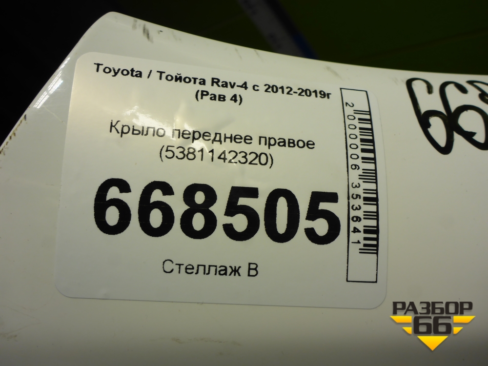 Крыло переднее правое (5381142320) для Toyota Rav-4 с 2012-2019г (Рав 4) в Краснодаре