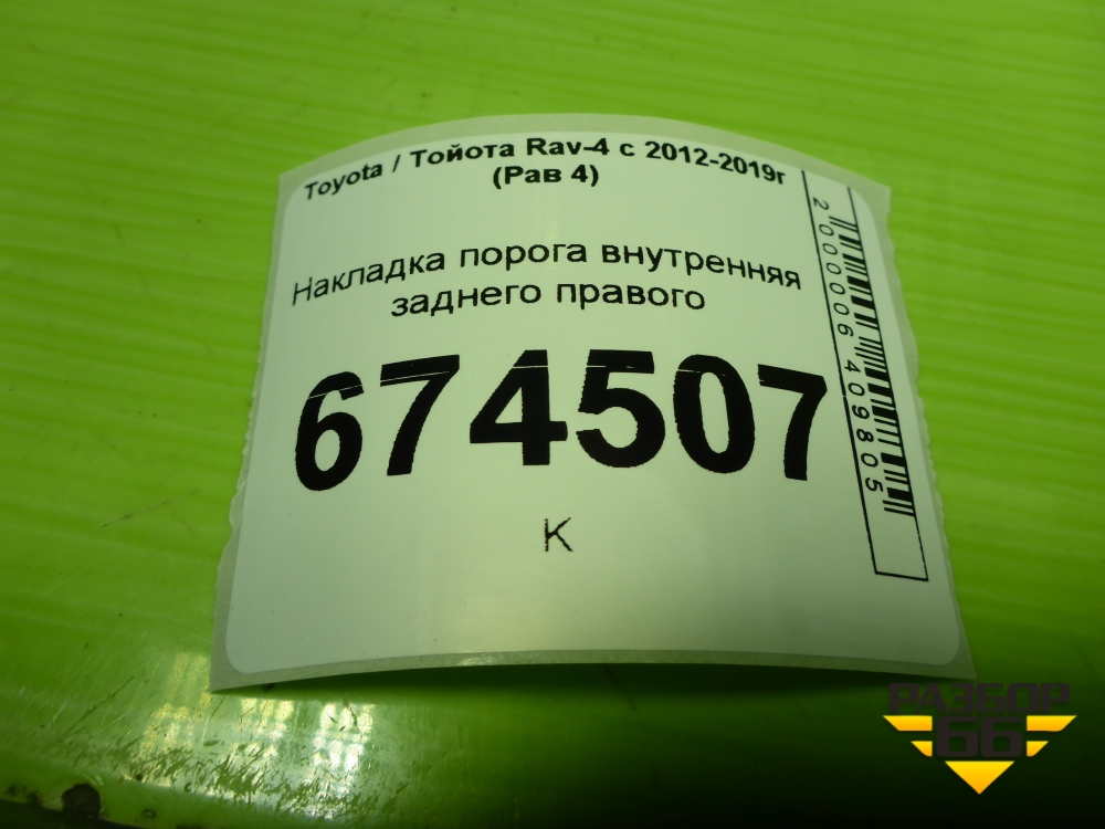 Накладка порога внутренняя заднего правого (6791742070) для Toyota Rav-4 с 2012-2019г (Рав 4) в Краснодаре