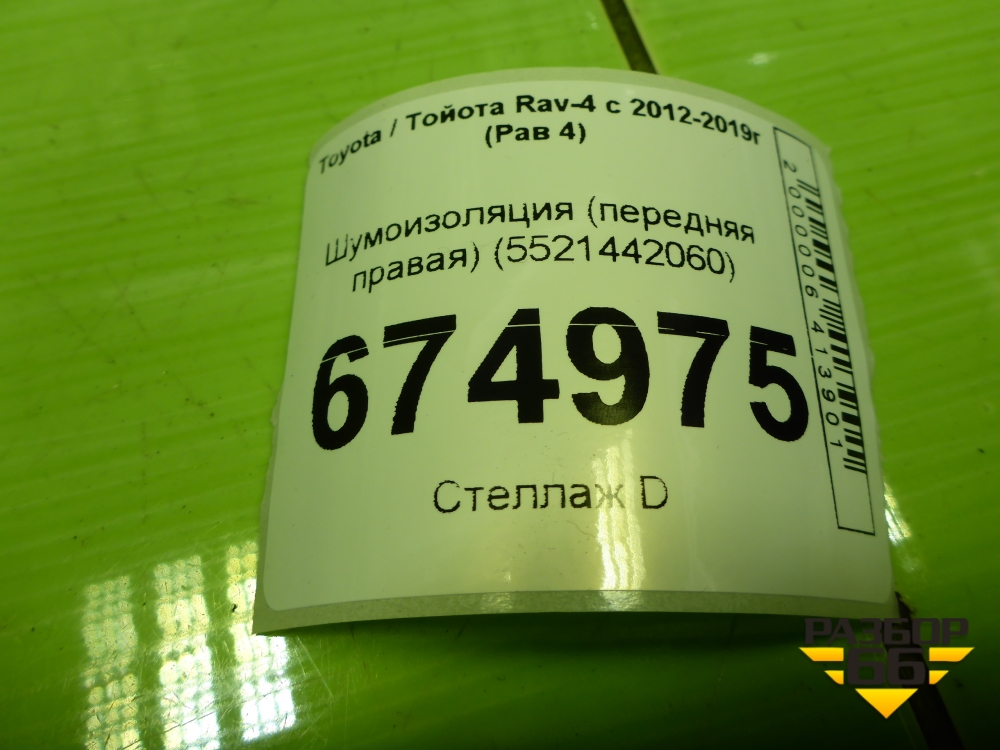 Шумоизоляция (передняя правая) (5521442060) для Toyota Rav-4 с 2012-2019г (Рав 4) в Краснодаре