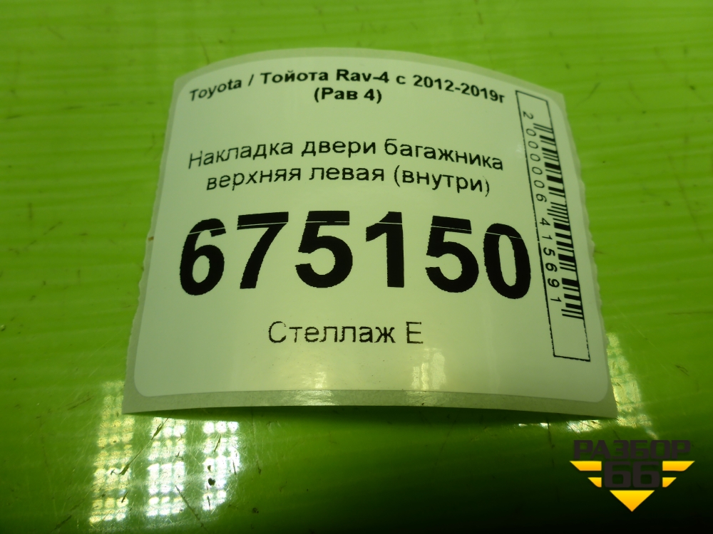 Накладка двери багажника верхняя левая (внутри) для Toyota Rav-4 с 2012-2019г (Рав 4) в Краснодаре