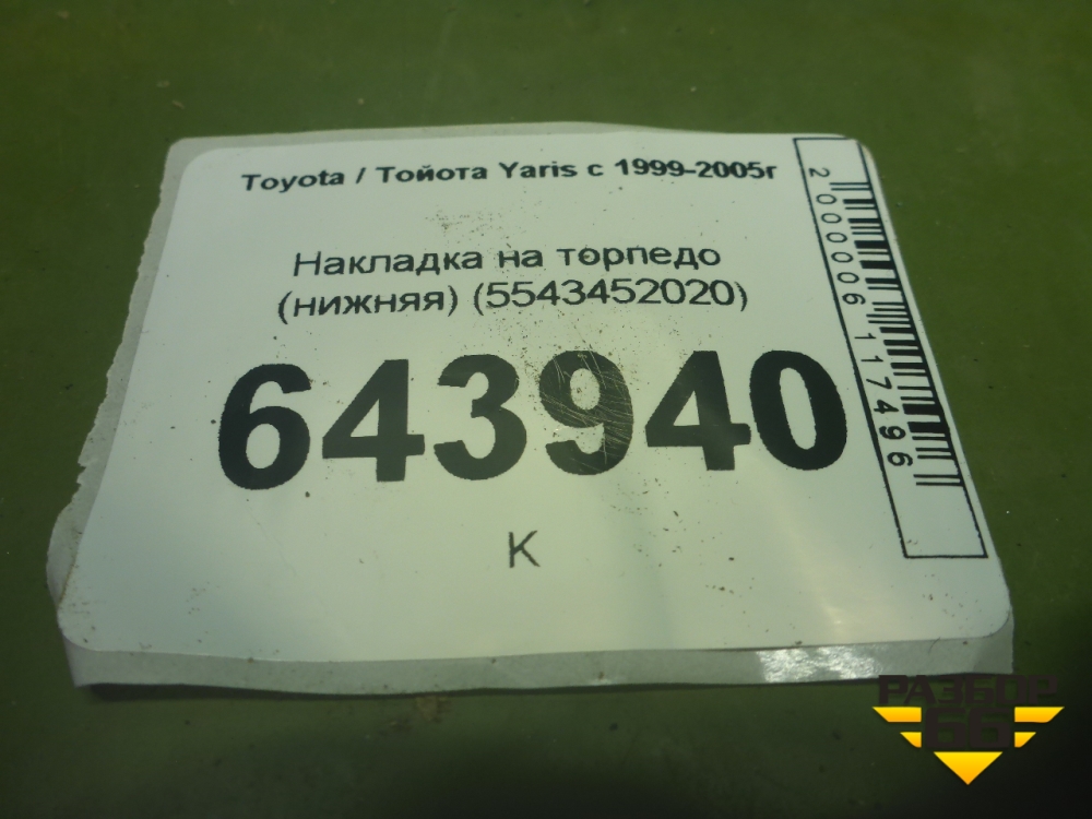Накладка на торпедо (нижняя) (5543452020) для Toyota Yaris с 1999-2005г (Ярис) в Краснодаре