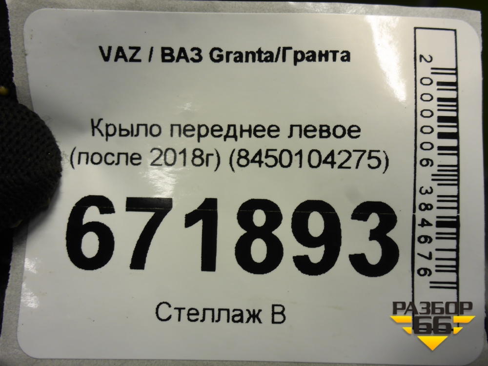 Крыло переднее левое (после 2018г) (8450104275) для VAZ Granta/Гранта в Краснодаре