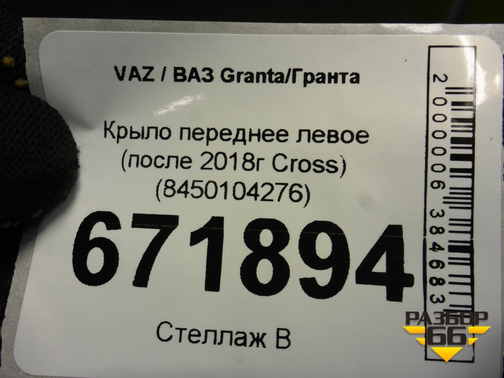 Крыло переднее левое (после 2018г Cross) (8450104276) для VAZ Granta/Гранта в Краснодаре