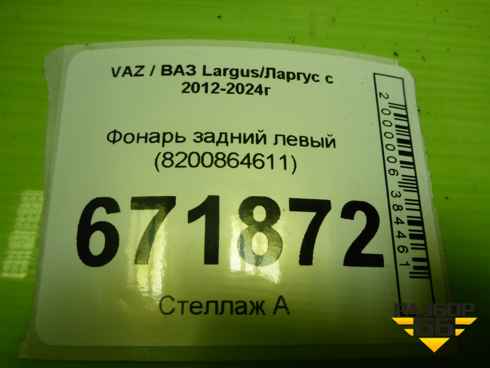 Фонарь задний левый (8200864611) для VAZ Largus/Ларгус с 2012-2024г в Краснодаре