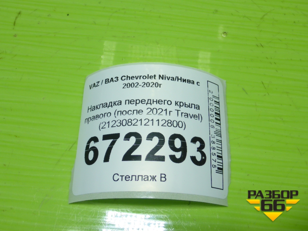 Накладка переднего крыла правого (после 2021г Travel) (212308212112800) для VAZ Chevrolet Niva/Нива с 2002-2020г в Краснодаре