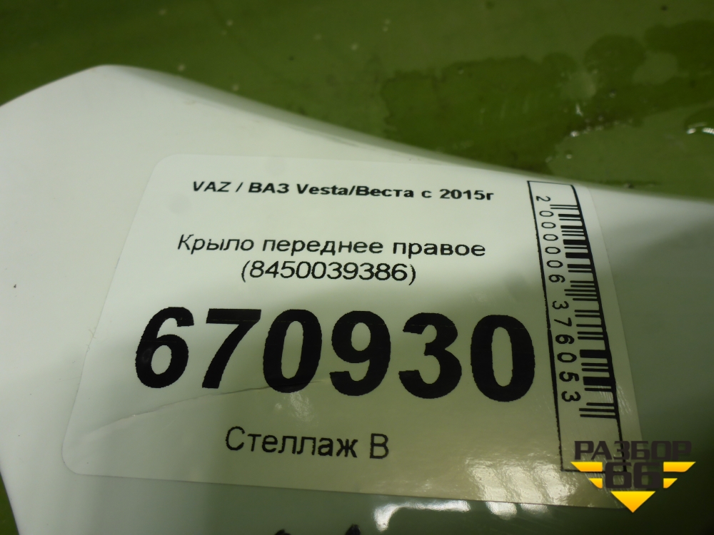 Крыло переднее правое (8450039386) для VAZ Vesta/Веста с 2015г в Краснодаре