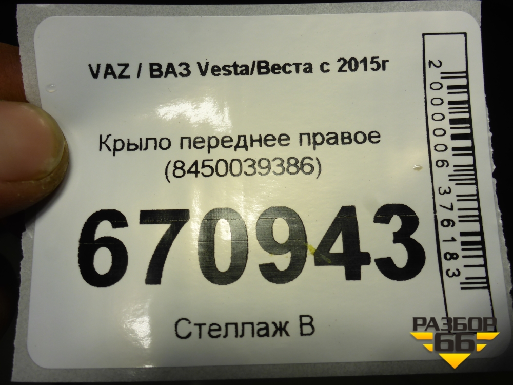 Крыло переднее правое (8450039386) для VAZ Vesta/Веста с 2015г в Краснодаре