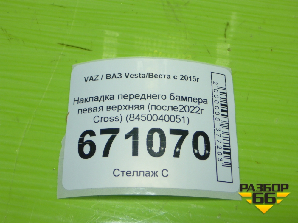 Накладка переднего бампера левая верхняя (после2022г Cross) (8450040051) для VAZ Vesta/Веста с 2015г в Краснодаре