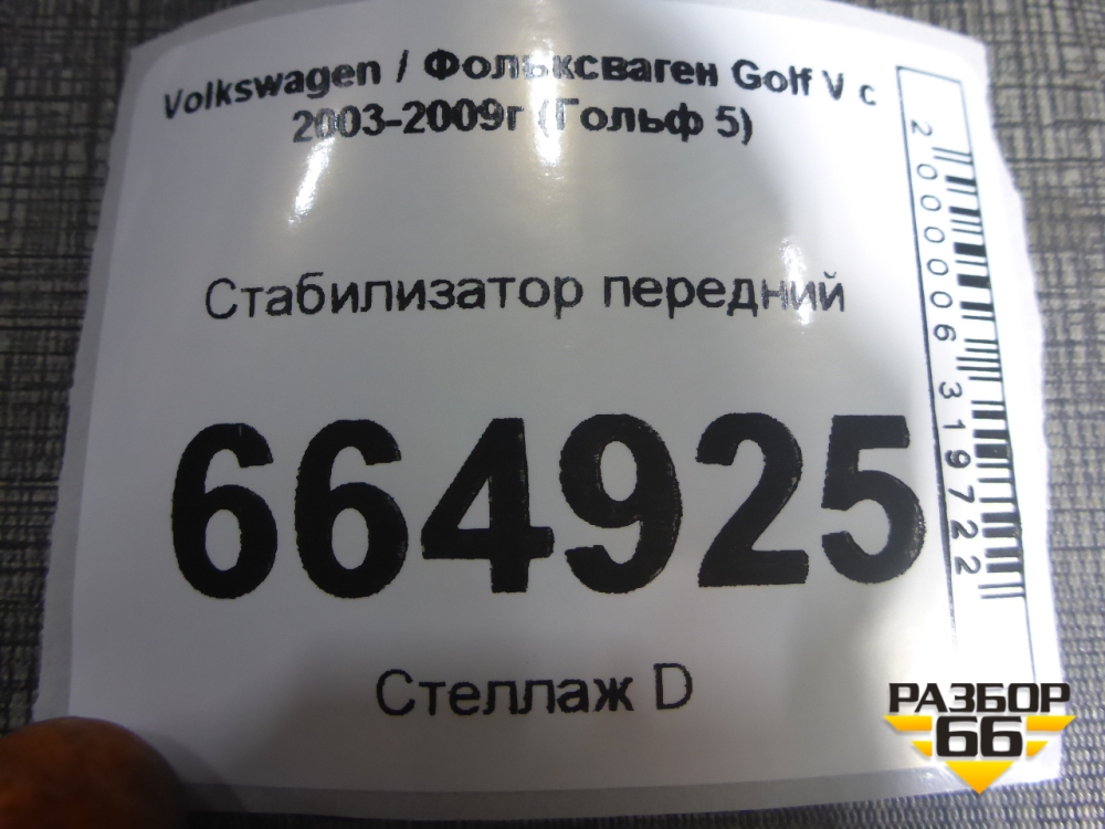 Стабилизатор передний (1K0411303AS) для Volkswagen Golf V с 2003-2009г (Гольф 5) в Краснодаре