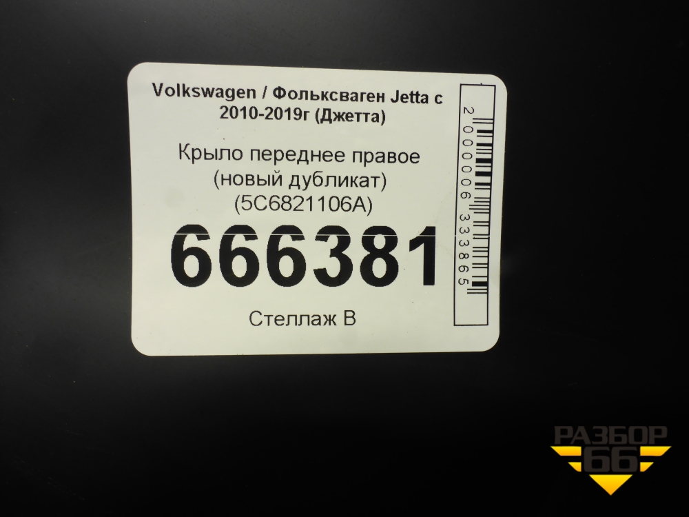 Крыло переднее правое (новый дубликат) (5C6821106A) для Volkswagen Jetta с 2010-2019г (Джетта) в Краснодаре
