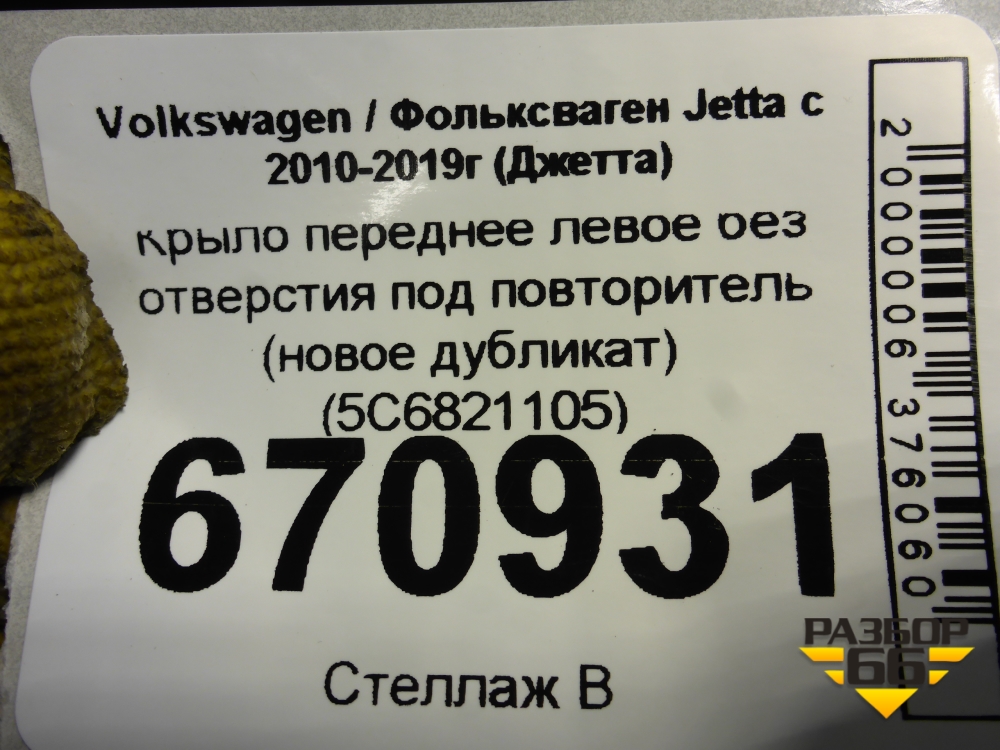 Крыло переднее левое без отверстия под повторитель (новое дубликат) (5С6821105) для Volkswagen Jetta с 2010-2019г (Джетта) в Краснодаре