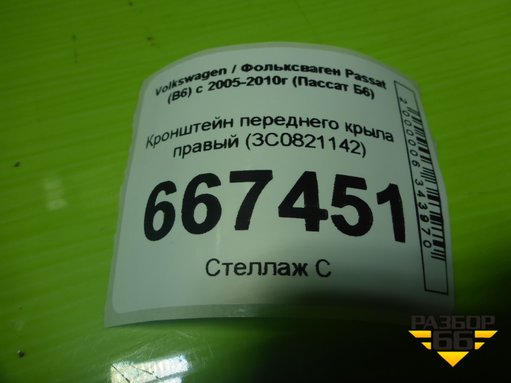 Кронштейн переднего крыла правый (3C0821142) для Volkswagen Passat (B6) с 2005-2010г (Пассат Б6) в Краснодаре