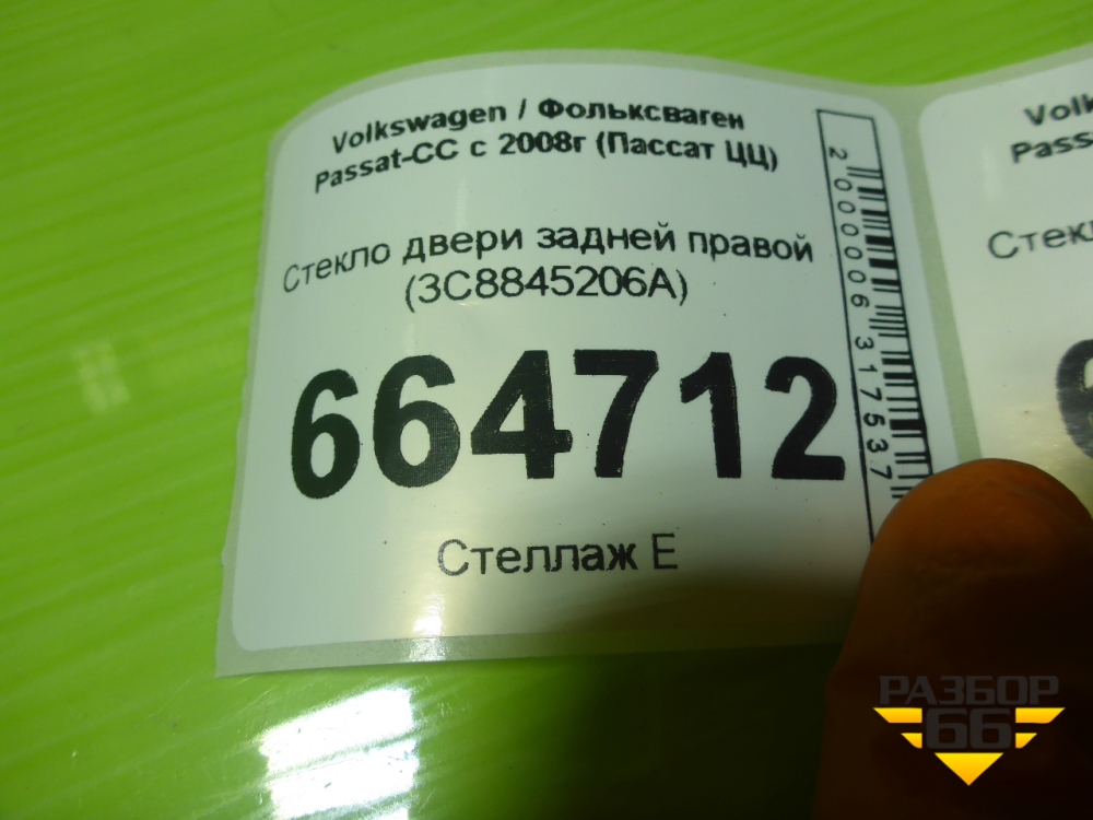 Стекло двери задней правой (3C8845206A) для Volkswagen Passat-CC с 2008г (Пассат ЦЦ) в Краснодаре