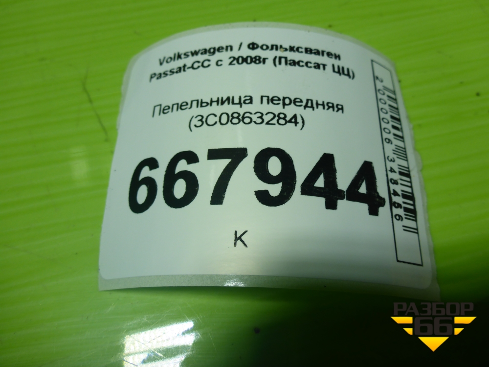 Пепельница передняя (3C0863284) для Volkswagen Passat-CC с 2008г (Пассат ЦЦ) в Краснодаре