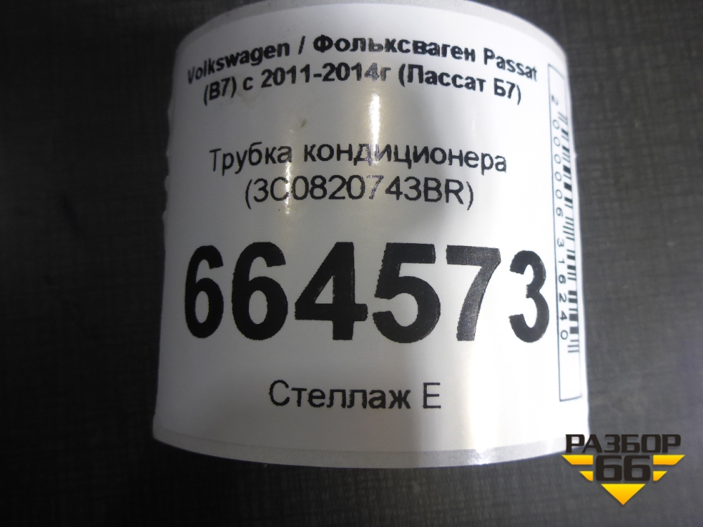 Трубка кондиционера (3C0820743BR) для Volkswagen Passat (В7) с 2011-2014г (Пассат Б7) в Краснодаре