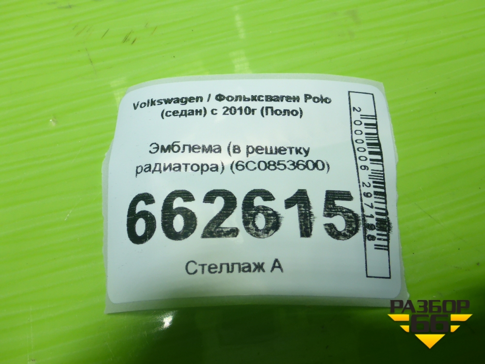 Эмблема (в решетку радиатора) (6С0853600) для Volkswagen Polo (седан) с 2010г (Поло) в Краснодаре