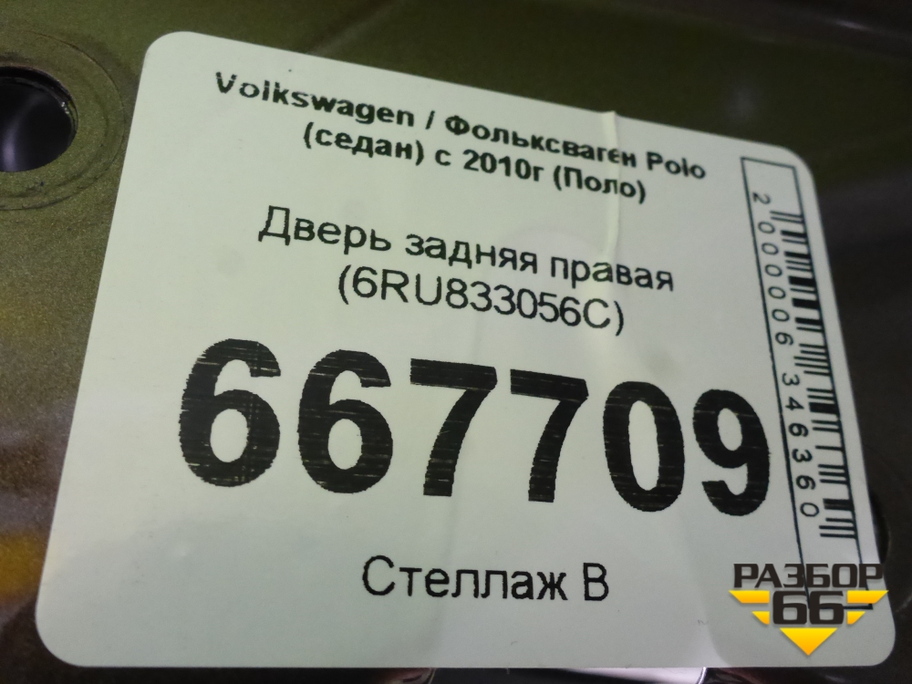 Дверь задняя правая (6RU833056C) для Volkswagen Polo (седан) с 2010г (Поло) в Краснодаре
