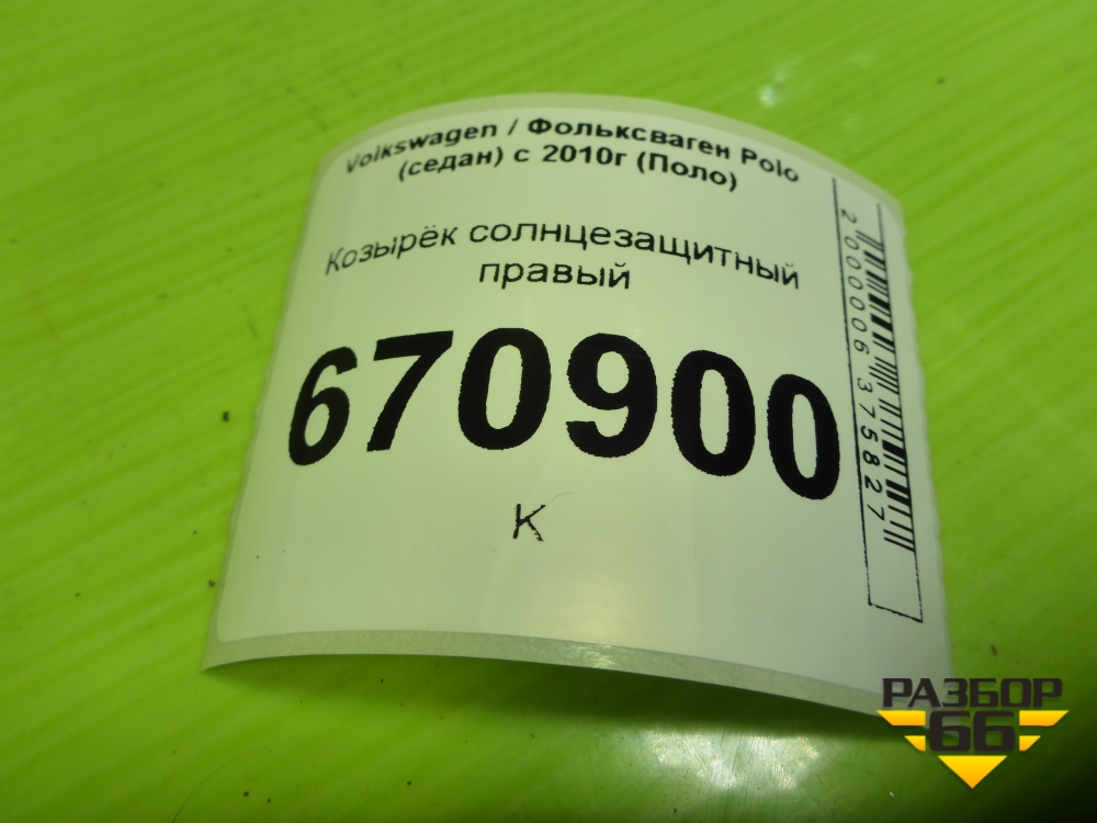 Козырёк солнцезащитный правый для Volkswagen Polo (седан) с 2010г (Поло) в Краснодаре