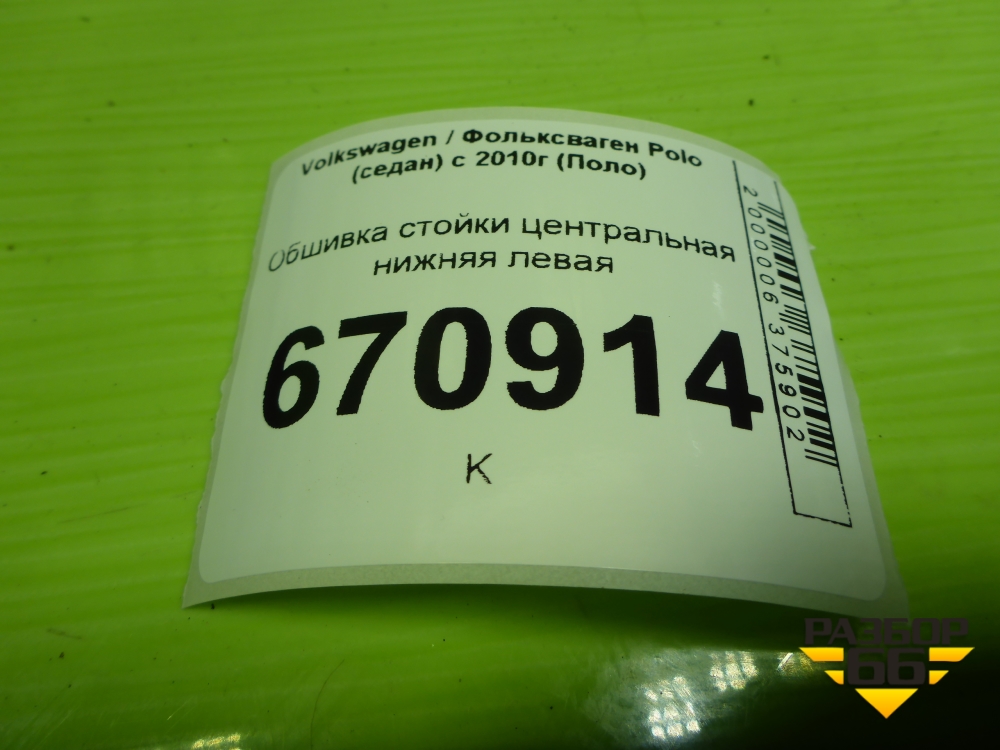 Обшивка стойки центральная нижняя левая (6RU867297) для Volkswagen Polo (седан) с 2010г (Поло) в Краснодаре