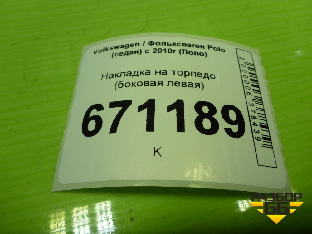 Накладка на торпедо (боковая левая) (6RU858247D) для Volkswagen Polo (седан) с 2010г (Поло) в Краснодаре