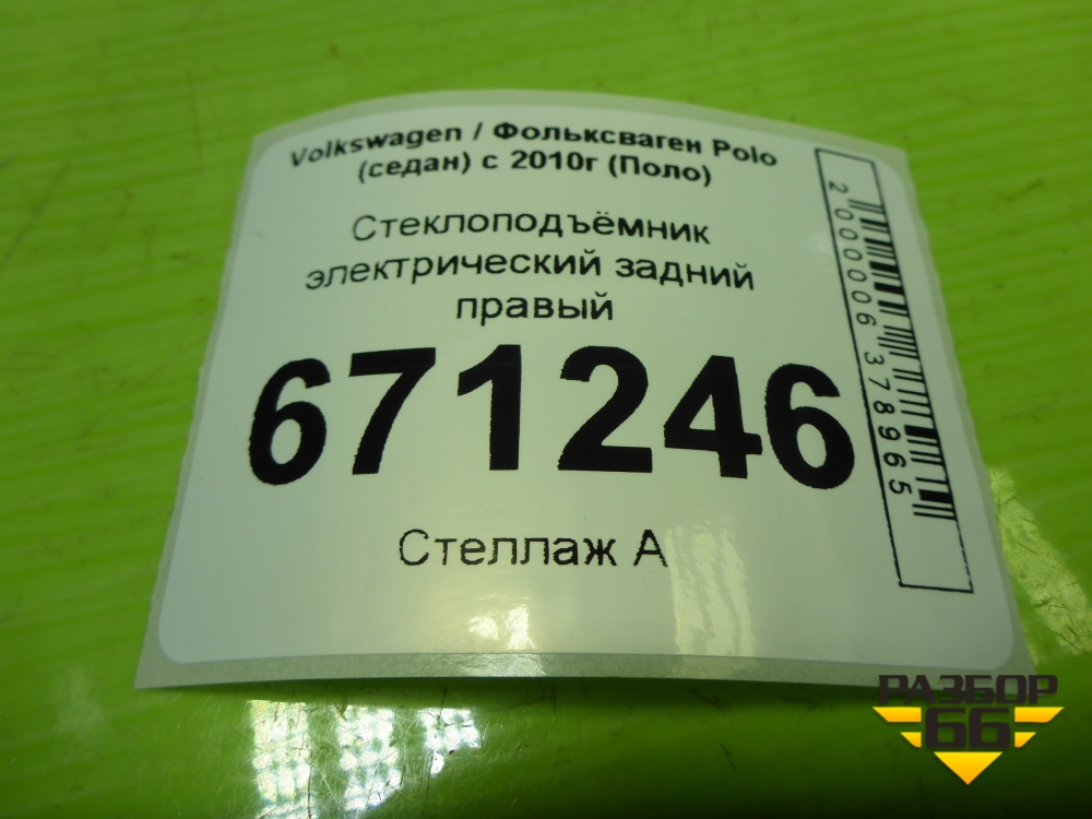 Стеклоподъёмник электрический задний правый (без моторчика) (6RU839462E) для Volkswagen Polo (седан) с 2010г (Поло) в Краснодаре