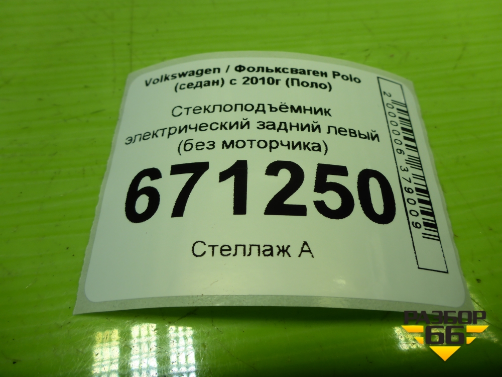 Стеклоподъёмник электрический задний левый (без моторчика) (6RU839461E) для Volkswagen Polo (седан) с 2010г (Поло) в Краснодаре