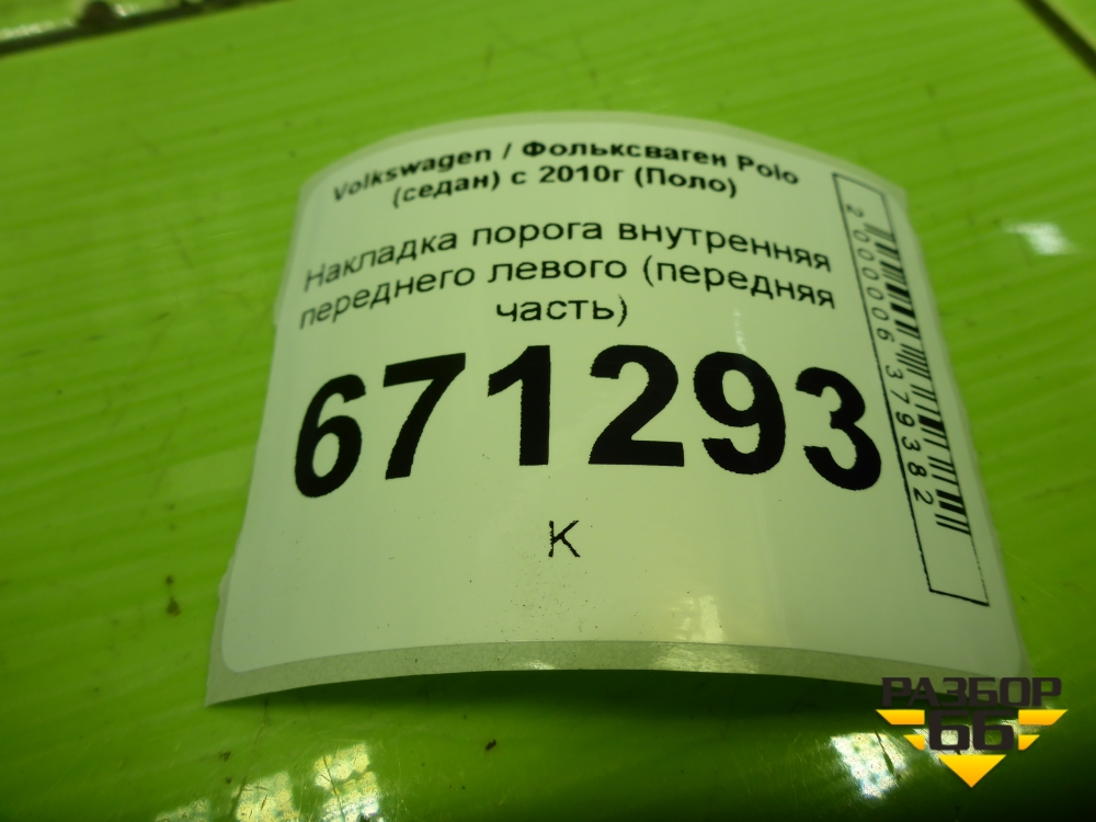 Накладка порога внутренняя переднего левого (передняя часть) (6RU863483) для Volkswagen Polo (седан) с 2010г (Поло) в Краснодаре