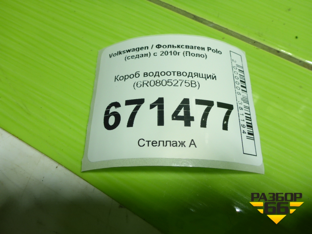 Короб водоотводящий (6R0805275B) для Volkswagen Polo (седан) с 2010г (Поло) в Краснодаре
