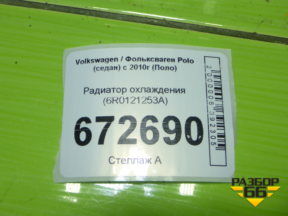 Радиатор охлаждения (6R0121253A) для Volkswagen Polo (седан) с 2010г (Поло) в Краснодаре