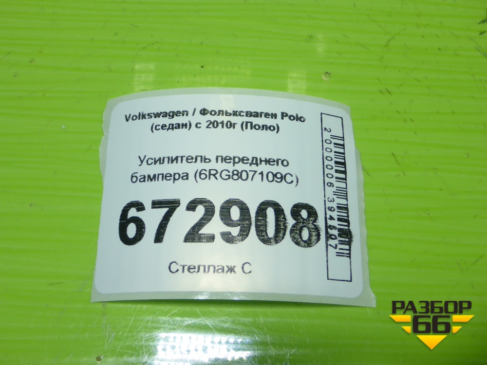 Усилитель переднего бампера (6RG807109C) для Volkswagen Polo (седан) с 2010г (Поло) в Краснодаре