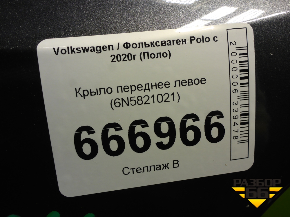 Крыло переднее левое (6N5821021) для Volkswagen Polo с 2020г (Поло) в Краснодаре