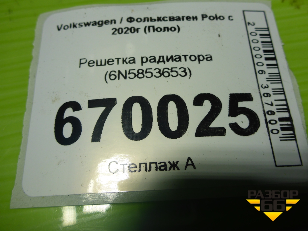 Решетка радиатора (6N5853653) для Volkswagen Polo с 2020г (Поло) в Краснодаре