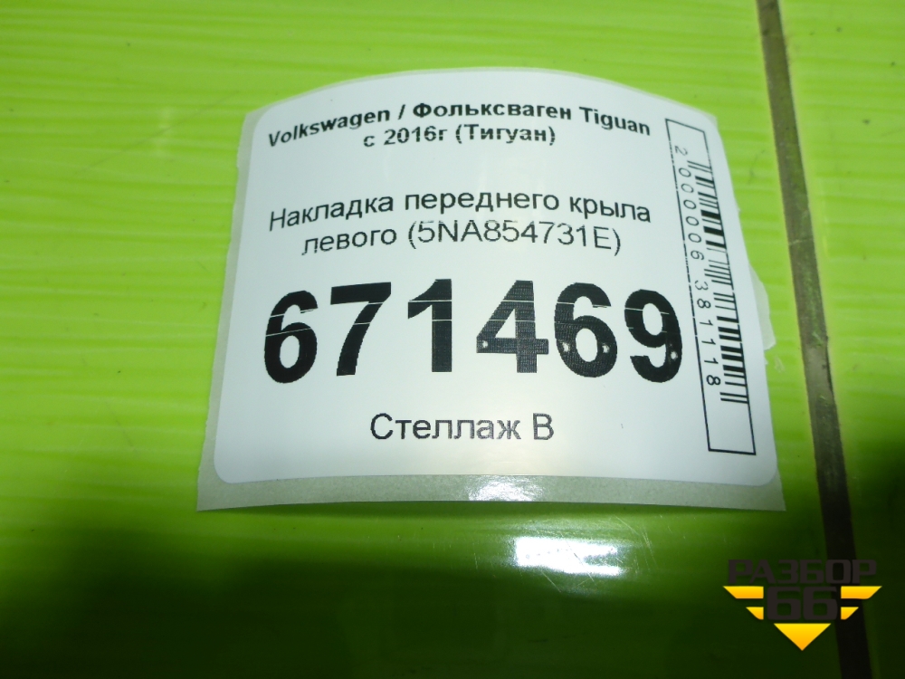 Накладка переднего крыла левого (5NA854731E) для Volkswagen Tiguan с 2016г (Тигуан) в Краснодаре