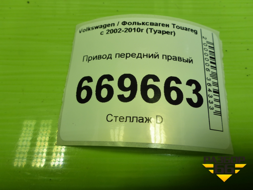 Привод передний правый (шлиц 38) (7L6407271D) для Volkswagen Touareg c 2002-2010г (Туарег) в Краснодаре