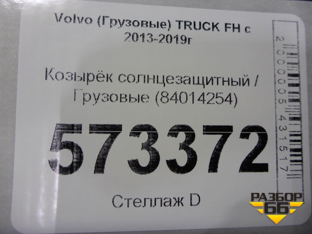 Козырёк солнцезащитный (84014254) для Volvo TRUCK FH с 2013-2019г (ФШ) в Краснодаре