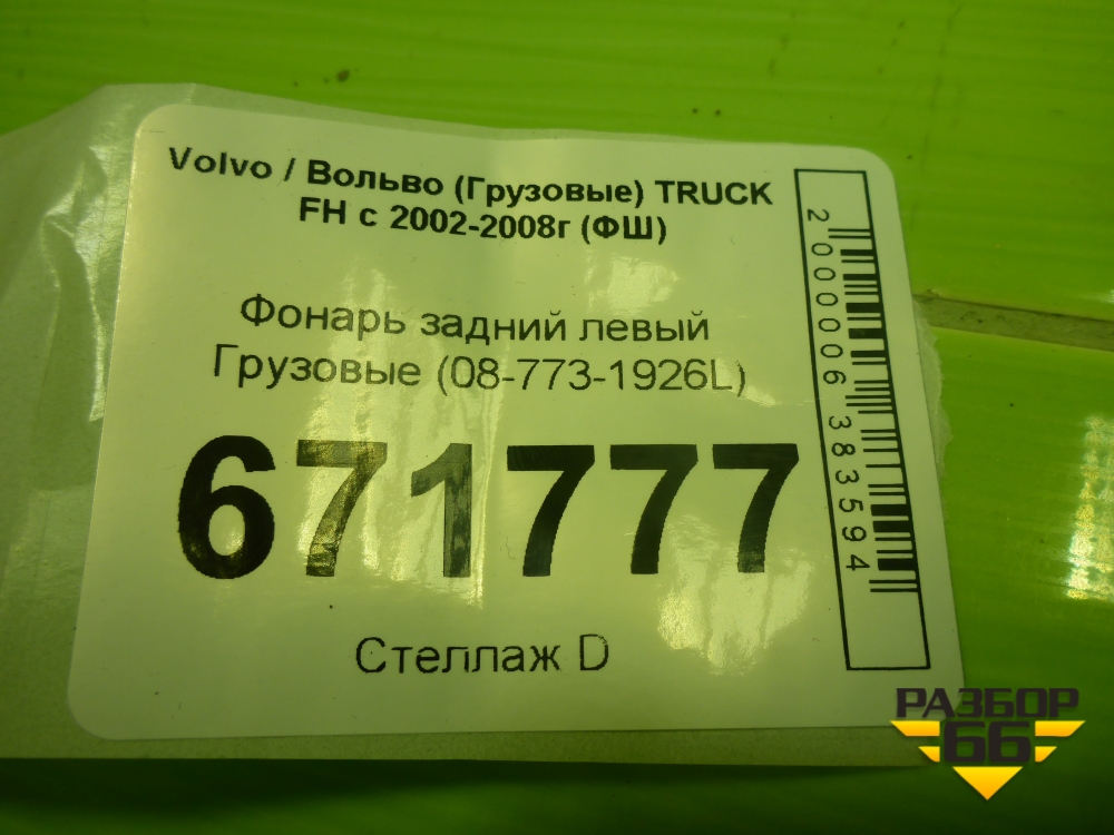 Фонарь задний левый (08-773-1926L) для Volvo TRUCK FH с 2002-2008г (ФШ) в Краснодаре