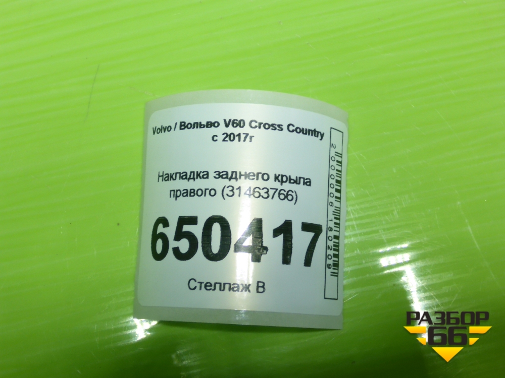 Накладка заднего крыла правого (31463766) для Volvo V60 Cross Country с 2017г (В60 Кросс Кантри) в Краснодаре