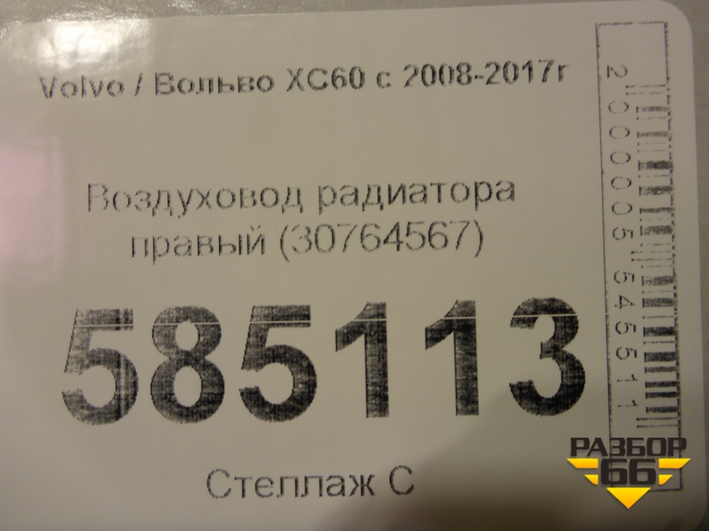 Воздуховод радиатора правый (30764567) для Volvo XC60 с 2008-2017г (ХС60) в Краснодаре