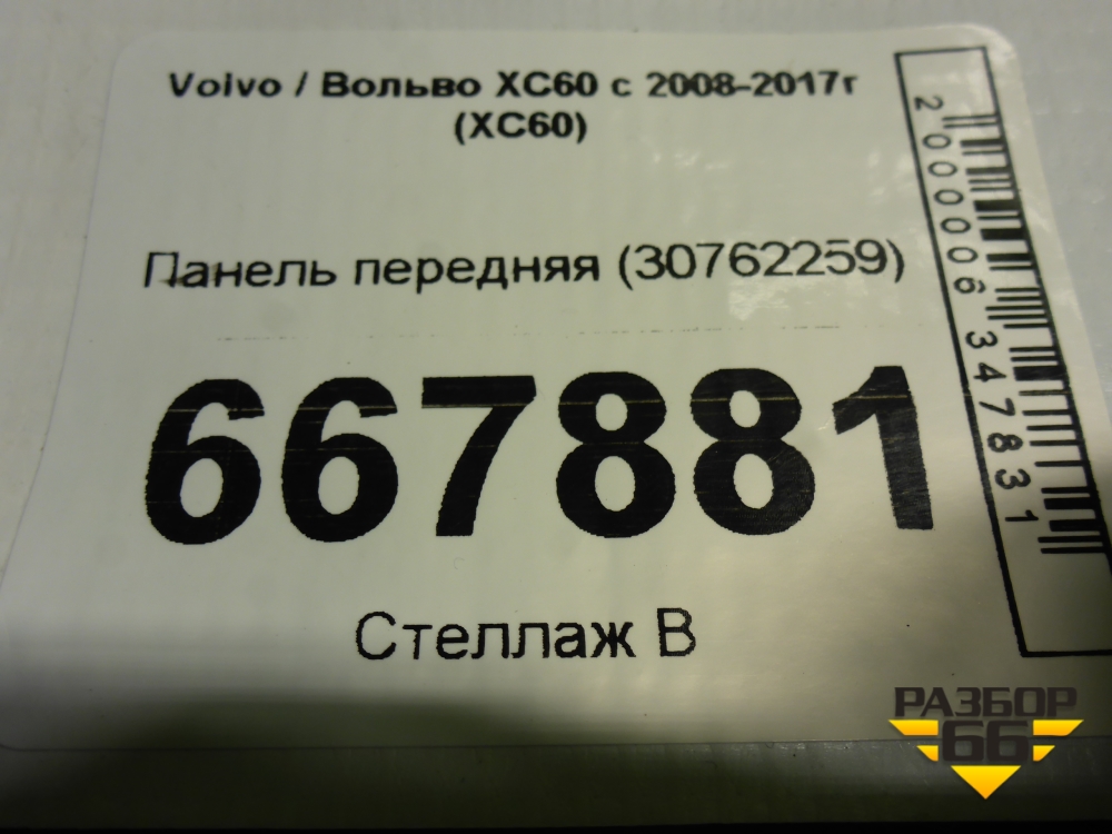 Панель передняя (30762259) для Volvo XC60 с 2008-2017г (ХС60) в Краснодаре