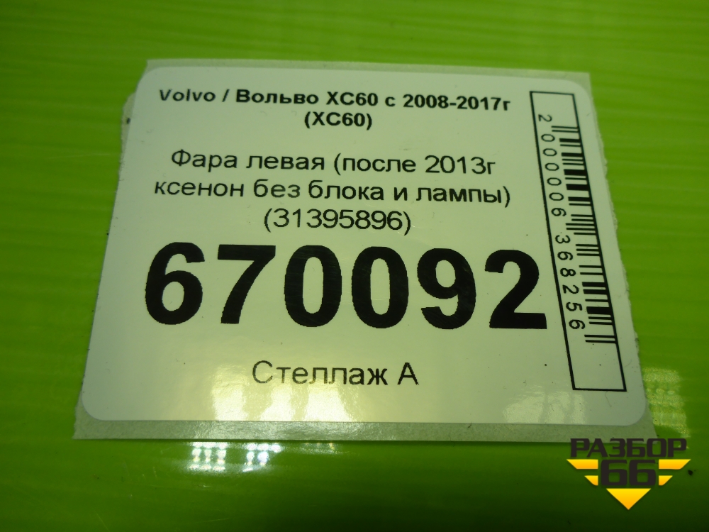 Фара левая (после 2013г ксенон без блока и лампы) (31395896) для Volvo XC60 с 2008-2017г (ХС60) в Краснодаре